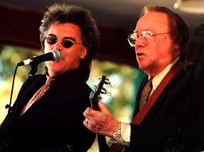 The music community seems small indeed. wHITEwATER'S Greg Davis played guitar for Ramona (Mrs. Grandpa) Jones and family. Tennessee Mafia Jug Band members LeRoy Troy entertained the crowd solo while Kent (Superman) Blanton performed with Charlie Collins. Honorary member Charlie Cushman also performed with Charlie Collins. Mac Wiseman was so enjoyable. Who can ever tire of John Hartford singing "Gentle On My Mind"? I love the group Cluster Pluckers and enjoyed seeing Sonia Isaacs perform with her family. There aren't enough words to describe Wailin Wood's harmonica playing.