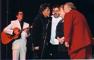 After she did 'I'll Come Runnin' ' Connie said she wanted to add a little spice to her show and called Marty out. He came out in his black leather pants and a black turtle neck shirt, looking mighty fine! They kissed on each other a little bit, then sang 'After the Fire is Gone'. Connie held the microphone for both of them and Rodd joined them on the chorus. They really seemed to enjoy performing together.