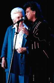 "Red, Red Wine and Cheatin' Songs" was next. After the song, Marty brought his mom on stage and presented her with the first Marty Stuart Signature Telecaster Guitar. She was dressed in appropriate blue. Marty told the story of how he had mowed lawns to save up enough money to buy his first guitar. His mama took him to the Fender store and Marty picked out the Fender Jaguar because it "had the most knobs on it." He told them "It was the sorriest guitar you all ever made." He then added, "and it still ain't worth a s**t." His mama shook her finger at him as if to say "you bad boy." Marty then played "Blue Train." As usual, Gary had the steel guitar singing the blues. Marty then introduced the band and performed "Sometimes The Pleasure's Worth The Pain."
