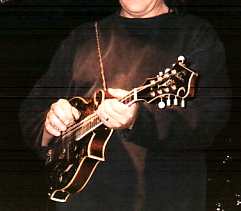 Finally it is time. Now even though the crowd is small, they were loud and very supportive, I most likely being the loudest! They were in their usual black, Marty had on the pants with the roses down the side and a black sweat shirt, I know he did not get hot. It had dropped to 50 degrees and our teeth were keeping time to the music! He did "High On A Mountain Top" and "Whiskey" and said "Now that's bluegrass ain't it?!" He didn't talk too much. "Blue Train," "Tempted," "Dark as a Dungeon," "Burn Me Down" followed and "Marty Stuart Visits the Moon" that brought em to their feet. He said " Let's hear it for my buddy J.D. Crowe!" "Sometimes The Pleasure's Worth The Pain," "Red, Red Wine," "Hobo's Prayer" followed that and then "Long Black Veil" -- not a sound was made. The crickets were even quiet, Marty looked out at the crowd and just grinned that Marty grin. He does appreciate it when we listen. Then he and Brad flat picked "Rawhide." Gang, I am telling you, that alone is worth the trip. I dread "Hillbilly Rock" but alas it came. He thanked us for coming, "hope you had a great time," and was gone. Well we were not gonna sit still for that! He came back and did "The Pilgrim." I went to the edge of the stage and got what I hope is a good picture of just his hands playing the mandolin. The crowd was on their feet.