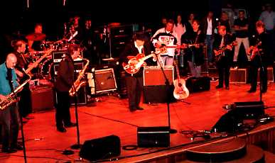 Nashville Mayor Bill Purcell presented Duane Eddy with a proclamation making him an official "Titan of Twang." Marty came out and joined Lisa Stewart for a few words and to introduce Peter Frampton. Marty said, "Good evening. I'm Marty Stuart. This is my sister, Lisa." This event........ when I first came to Nashville, Lisa, you're from Louisville, MS I'm from Philadelphia, MS, you're from way up north, 25 miles. And when I first came to Nashville, it was the sound of the music. I didn't want to go to New York City, didn't want to go to LA, I wanted to follow it with my heart to Nashville and so I did. I started playing right here on this stage."