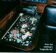 OK, OK -- so it's a 45-foot 1998 Prevost LeMirage XL, $500,000 of black steel and chrome. It has a shower, phones, a fax, stereo, big-screen TV and a steering wheel. But that's as regular as it gets. "It's a high-tech, tragically hip, rock 'n' roll cowboy, hillbilly bunkhouse on wheels," says Marty. "It's really just an updated version of the old Ernest Tubb bus, which his driver Hoor Borden designed."