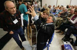 Just imagine, for example, Haggard bringing a few musician friends to strum acoustic guitars and sing some old favorites in your living room, and you'll get a sense of the rare intimacy Haggard shared on Saturday. Many of Haggard's family and friends joined him, as did longtime friend and fellow country artist Marty Stuart, a past president of the Country Music Foundation. With longtime Stranger Norm Hamlet on Dobro and Bakersfield-based former Stranger Mark Yeary on keyboard, Haggard and Stuart played unplugged-style renditions of "Mama Tried," "If We Make it Through December" and three or four others. It was a casual and easy-going performance, as if they were back in Oildale relaxing on a friend's shaded front porch. But everyone knew the Oildale of old no longer exists. "Little Oildale is a fairy tale," said James L. Wattenbarger, a local poet who goes by the name James L. from Oildale. "In my nom de plume, James L. from Oildale, the operative word is 'from'" he said. "I'm not there anymore." But for one day, the Oildale that bore Haggard and Haslam came alive again.