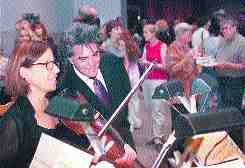 Stuart came to Clarksville for a reception honoring his work and Susan Hicks Bryant's "Revival: The Montgomery County Courthouse Project." Spurgeon said fans followed Stuart in large clumps as he walked through all of the galleries. "He wanted to see everything," Spurgeon said. Allie Roach, an Austin Peay State University art student, and Lew Powers attended the reception with their children, Brittney, age 10, and Cody Powers, 7. Lew Powers particularly liked Stuart's photograph of Bill Monroe playing mandolin in his chicken yard with a limousine in the background. "It explains living in one world and coming from another," Powers said. Stuart went on the road as a musician when he was 12, touring with bluegrass legend, Lester Flatt. Stuart asked his mother for a camera and started carrying it with him everywhere. Later, exhibiting his photographs was inspired by another musician/photographer who did the same. "I saw a jazz player called Milton (Hinton)," Stuart said. "He had a book called 'Overtime' (The Jazz Photographs of Milt Hinton). When he was a young man, Billie Holliday and Dizzie Gillespie were just learning their craft. He started carrying his camera with him to sessions, and it was a glimpse behind the curtain. That really touched me, and I realized I was seeing things other people didn't get to see." Stuart has had several exhibits of his photographs and published a book of them, "Pilgrim: sinners, saints and prophets" ($30). Stuart signed hundreds of books and souvenirs for the more than 500 people at the reception. Doug Murray, a member of 194th MP Company at Fort Campbell, brought along his red Stratocaster guitar for Stuart to sign. Murray, 24, has been a country musician half his life and is a big admirer of Stuart. "He's a genius," Murray said. Murray also asked Stuart to sign a black and white photograph and cardboard cutout for friends. One was being sent to Staff Sgt. James Price, who is stationed in Korea, and the other bound for a soldier in Kosovo. As the crowds began to thin, Stuart walked slowly around The Hand Gallery with Bryant, looking at her photographs and at relics salvaged from the courthouse after the tornado. Bryant said of Stuart's photographs that her is a still life of Minnie Pearl's worn leather shoes. "All it took to light my fire for the journey was one round of applause," according to the inscription beside that photograph. And, APSU student Roach said there is a rawness about Stuart's photographs. "Some of them are posed, but a lot of them accentuate people as themselves," Roach said. "His photographs speak." By Stacy Smith Segova |