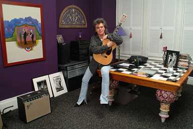 What you see: Not-so-pure country. Despite keepsakes like Hank Snow's rhinestone belt and Lefty Frizzell's right boot, the office of this honky-tonk singer, songwriter and producer isn't all about "Hillbilly Rock." Years after breaking into the top 10 with the hit song -- on an album of the same name -- Marty Stuart can rest his boots on a whimsical, handmade desk that bears the signature checked, striped and floral pattern of upstate-New York design house MacKenzie-Childs. His Music Row headquarters, set in a historic home with paned windows and wooden shutters, is just as eclectic. Walls here are painted dramatic shades of red, black and aqua. But this president's two-room suite is deep purple, with colorful art ranging from chandeliers painted by Ulla Darni to a tapestry embroidered by Rose Clements. Mr. Stuart drew from his stage-wear images to design the wall-hanging himself. And he worked with a friend to create the tooled-leather mirror and table, embellished with silver stars. An American flag was made in 1958, the year Mr. Stuart was born. A wrought-iron arch was crafted in France. The performer, who served as the president of the Country Music Foundation for six years, was only 13 when he came to Nashville to join Lester Flatt's bluegrass band. So three years ago, he scheduled an "intermission" to compose, produce and redecorate his office. To make room for the handiwork of others, he took down the gold and platinum records, though he decided against boxing his Grammys. He also limited the display of country music memorabilia. Mr. Stuart has donated the bulk of his renowned collection, some 20,000 items valued in the millions to the University of Mississippi's Center for the Study of Southern Culture -- though this picker still plays Hank Williams Sr.'s guitar.