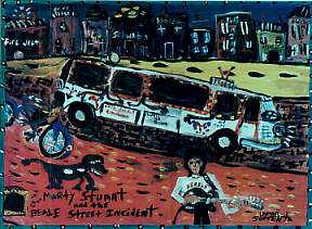 I finished the song in about an hour, then took it back to Sun and played it for the band. We recorded it right there. I listened to the playback, then packed my mandolin and headed home to Nashville. As I was leaving Memphis that time, I thought to myself, This town doesn't mind taking it away from you but, in the long run, it always gives you back a little more than it takes. This rumination drifted away when I heard Roger Miller come across the AM band of my car radio. He sang "The Last Word in Lonesome is Me" and then he too disappeared. The fluorescent lights on a billboard advertising Graceland were either blinking or winking at me as I drove past. I made myself a promise: The next time I'm in Memphis, I'm going to Graceland to visit Elvis' gold lamé suit. Any self-respecting son of the South knows that Elvis is, and will always be, our main cat. I always come back around to the sad feeling that he should still be here among us other than in spirit, and I'd be a liar if I said that I don't take pleasure in admiring his possessions. But what good are a king's possessions when he's not around to enjoy them? Thanks to Louisiana's former Governor Huey P. Long, all of us Southern boys have the right to believe that every man's a king. I thought, Okay, if I'm a king, what are some of my possessions? I've had stars in the heavens as well as children that aren't mine, named after me. Cars, horses, a parrot, a malt in a country music-themed restaurant in Hollywood, a Martin guitar, a street trolley in Nashville, and a country music road in my hometown all bear my name. Treasures, no doubt, but then there are the more personal things, like my country music memorabilia collection that's touring across America this summer, and my dog, my house, my guitar, my jeep and Geronimo's autograph. All mean a lot to me. But one of my most treasured possessions is my bicycle. My friend and manager, Bonnie Garner, bought it for me as a birthday present last year. It's the first one I've had since I was a kid. I keep it underneath my bus, and I can't tell you the joy that it's brought me for the past year-and-a-half. I've ridden it--a Trek ten-speed--all over America's back streets, main roads, and town squares. It's my ticket to freedom. Today is no different. It's a perfect morning for a bike ride: there's not a cloud in the sky, the air is fresh, Memphis is barely awake, and I can't wait to tour the town. I leave Sun Studio and take off down Union Avenue in search of nothing in particular. Before ten a.m., I tour Union, Madison and Poplar Avenues, and Main Street. But no trip to Memphis is complete without a visit to the Peabody Hotel. So I scoot over there and have my bike valet-parked before I go inside to call Earl Scruggs for the King of Bluegrass Jimmy Martin's telephone number. Jimmy left a panicky message on my code-a-phone yesterday. He said he needed some new white boots to replace the pair that he'd given me for my touring memorabilia exhibit. I can understand why they would be hard to replace. They are state-of-the-art white ankle boots made by Acme, with nylon zippers up the side. King Jimmy had them customized with gold tips and had an assortment of red and green rhinestones glued on the toes. His message said, "Me and Pat Boone always wore white on our feet. I'm concerned that my fans are upset with me for not wearing my white boots. Them light brown ones I've been wearing ain't gittin' it! Now you've got to help me find another pair." Anyone who knows anything about fashion knows that downtown Memphis is the place for flashy clothes. Let's say you have a red 1978 Fleetwood Cadillac with wide whitewall-tires, gold-spoke wheels, a glow-in-the-dark hood ornament and a neon-light package underneath the chassis to complement your customized license plate and tinted windows. If you need a suit, shoes, shades, hat or other accessories to complete your ride, Main Street in Memphis is the place to shop. Just a moment ago, I spotted a pair of while snakeskin ankle boots with Cuban heels on sale for $69.98 in the window of Discount Sammy's men's shop at 101 South Main. This might be what King Jimmy is looking for. But all I get is Jimmy's answering service. I enjoy the living-room atmosphere of the Peabody lobby a little more before claiming my bicycle. It hurts me to admit that my two-wheeler doesn't quite have the presence that the stretch limousine parked in front of me has. Although a bicycle is definitely not a star machine, it's a good way to gauge your charisma. You think you're a star? Get a bicycle and see. The head bellman laughs when he sees whose bicycle it is. Then he tells the young man that delivers it not to accept my tip. He says, "Mr. Stuart has done hit on hard times. I remember when he used to pull in here in a car. He even had Jerry Lee Lewis bring him here one morning about three a.m. Then he got a bus. Then two buses. Now look at the boy--he's down to a bicycle. Let him keep that dollar. He might need something to eat." He shakes my hand and tells me when I get something with a door on it to be sure to come back so he can open it for me, and to remember him on my way up. I high-five the whole staff and take a left turn out of the parking lot toward Beale Street. When I make Beale, I see B.B. King's nightclub and the Rum Boogie Cafe. I flash back on some reckless nights and unmentionable sights from days gone by. The smell of barbecue makes its way through the air. I notice the clock on the street reads 10:35 a.m. The shops begin opening slowly. I can sense the effects of last night all over everybody. I stop to admire my favorite folk artist Lamar Sorrento's painting of Slim Harpo in a store window. Music blasts from the restaurants and storefronts along the street. In the span of three minutes, I am serenaded by Robert Johnson, Sam and Dave, Ma Rainey, Elvis Presley, and B.B. King. It's a reminder of the difference in Memphis' music and Nashville's. In my star-making hometow