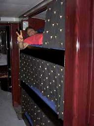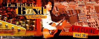 Eau Claire, Wisconsin: When I awoke in my bunk Saturday morning, I could feel the bus starting and stopping, which meant we were off the interstate and working our way through another city to another hotel. Today, the Holiday Inn in Eau Claire, Wisconsin. I went to college in this town, then lived here another seven years. I still return frequently and wanted to watch as we drove the familiar streets so I drew open the curtain. It met resistance. I tugged harder and it slid open a foot. I tugged again and as it opened further I found myself fenced in by a crisscross web of gaffers tape. The haphazard latticework ran the length of the bunk. In order to get out I had to tug and tear an opening through the sticky strips. I realized immediately that I'd been had and that this was my going-away present. But it was only the first of several surprises. Thinking I should take a picture of the pranksters' macrame, I discovered that the Discovery-issued digital camera was nowhere to be found. Neither was the Discovery-issued laptop, my briefcase, or my boots. I looked fore and aft, trying not to wake anyone. Nothing. I'll jump ahead now and say that eventually, after a few folks woke and offered a hint or two, I found my possessions squirreled away here and there. But the fun wasn't over. My boots had been completely unlaced, then re-laced backward and snugly knotted at the base of the tongue. By the time I got my footwear restrung I had an audience of grinning fools. Their grins turned gleeful when I discovered their coup de grace: Each boot had been filled with cheese slices from Friday night's deli tray. The whole thing reminds me of an Agatha Christie mystery I read in which a man is murdered on a plane in mid-air. I know that the person(s) who perpetrated this malfeasance is(are) somewhere on this bus. I believe I have the suspects narrowed down to one road manager and one sound man -- both were still awake when I turned in. Come to think of it, our driver Ty is definitely culpable as an accessory after the fact since he was awake at the wheel when the dark deeds transpired and did nothing to intervene. And he's certainly guilty of obstruction of justice, as he refuses to sing. When I saw Marty later in the day he said, "I understand you got crewed!" Yes, I surely did. Made me grin all afternoon.