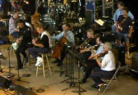 Nashville: After seven shows in four days Marty Stuart, his Rock & Roll Cowboys and crew, and one tagalong writer are back in Nashville. Yesterday was a day off. Or at least on the schedule it was. Our buses left the Pleasanton Hilton at 5 in the morning for the short run to Oakland, where we caught a flight that arrived in Nashville in early afternoon. But once we got there, Marty was due at rehearsal for a televised special to be recorded later this week, the crew had to load the equipment on a truck and stow it in a warehouse -- we're all due in a parking lot on the east side of Nashville at 10 this morning to leave for a show in Atlanta. In the meantime, the two bus drivers we left behind at the airport in Oakland are out on the road somewhere, dead-heading back to Nashville to catch up with us in time for today's trip. But me, I actually had some time yesterday to look back on the past week, especially what it's like to live most of your life on the road. When you're constantly moving you have to make an effort to hold on to those things that matter to you. Like Sunday morning in Petaluma, when Marty called my hotel room and invited me to join him at church. A Baptist, he frequently worships with other denominations as a simple matter of logistics but, when we met in the hotel lobby the desk clerk had located a Baptist church nearby. Our cab driver overshot the address, explaining that he was preoccupied with buying a boat. He refused to accept fare, insisting instead that Marty put five dollars in the collection plate. An elderly man handing out programs at the door looked at Marty -- in his black and his very pointy cowboy boots -- and said, "You ... you're somebody, aren't you?" As we chose a pew in the rear of the church, a flustered teenaged girl leaned in and asked if she might have an autograph. "I'd be glad to -- after the service," said Marty softly. The service opened with a baptism in a large Plexiglas pool at the front of the church. When the girl being baptized returned to her seat her tearful grandmother rose and embraced her, then sat with her head resting on the girl's shoulder. Marty leaned toward me and whispered, "That's why I'm here." He wasn't always like this. Years ago, when he was playing in Johnny Cash's band, Marty wanted to be like Johnny Cash. He drank and lived a little too hard. Now he makes a point of working church into his road schedule. Like many performers, some of Stuart's earliest musical influences came about through the church. Two days earlier in a trailer backstage at Del Mar, he had told me, "There really wasn't much difference between the music I heard in church and the roots of rock, bluegrass, blues, and rockabilly. The cottonfields and the church were the platform for country music." This morning, however, he was resting his voice, so I sang for both of us. I rarely sing hymns anymore and I had to drop an octave for the high notes, but no one seemed to mind. In the end, the visiting preacher went a little long and we were late for the bus. Marty tithed the cab fare and we tip-toed out the back. Twenty minutes later we were on the bus and out of town.