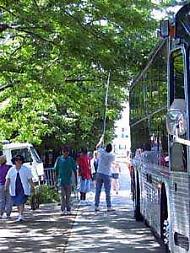 It was bad enough when the branches began scraping the paint, but when a particularly hefty limb whacked the satellite dish folded atop Marty's bus, Ponch popped the air brake, bailed out, snapped open one of the stowage bays beneath the bus, reached in, and drew out a long, collapsible pole attached to a saw. Shortly thereafter, the City of Chicago street crew had some greenery to clean up, and the buses were back where they belonged. The trip is almost over for me, and I feel as if I've only shared a sliver of what I've seen. So for the rest of this dispatch, I'm just going to sling a mismatched mish-mash of tidbits at you -- little things that are worth sharing. Graze at will.