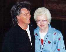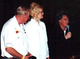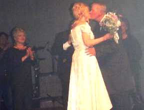 By this time, the midnight bell was tolling and it was time for the wedding of Jimmy and Leslie. Leamon Flatt was the minister and best man Marty Stuart and best woman Connie Smith stood for the couple. Kentucky Headhunters played the nuptial music as they came down the center aisle of the Ryman. After the nuptials and prayer, Jeff Bates serenaded them with "Circle of Love". They were pronounced husband and wife and left happily ever after.Marty came out and sat on the steps with the Superlatives in acoustic style. He announced that none other than "Waffle House" was sponsoring their new tour, then they had Cledus come out for an acoustic song Marty had written just for him called "I Met My Wife At The Waffle House." The four of them also did a kicky tune from the new album acoustically called "By George". It was time for a gospel set with the Martins and they were really great! Their voices blended so well, and they ended with an a cappella song. Marty announced that Wynonna was coming up, then he and Connie sat on the steps together and he played acoustic guitar while she sang a song they had written together a couple of years ago..."If I Were To Lose Your Love." Wynonna came on with: