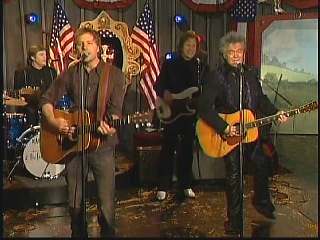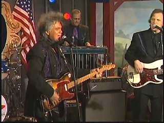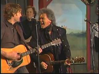 After a commercial break, Eddie Stubbs promoted the "Superlatone Collection" of five CDs, Live at the Ryman, Badlands, Compadres: An Anthology of Duets, Cool Country Favorites and Souls' Chapel. He introduced Marty again. Marty said, "Dierks, thank you for coming by." Dierks said "Thanks buddy. "Marty continued, " I love what you're doing out there. You're making some great songs and some great records. Making a lot of people happy." Dierks said, "This is fun to be here. This is a highlight for us." Marty says, "You still 'Got A Lot Of Leavin' Left To Do'. That's the one I wanna hear. How about a hand for Dierks?" Handsome Harry and Marty sang background vocals on the song.