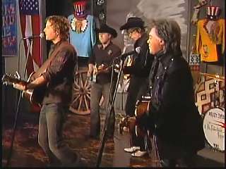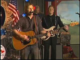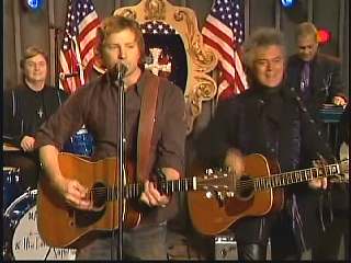 Marty said, "And that's exactly right. Somebody say 'howdy' to me and send that song to Travis Tritt. How about a hand for Mr. Dierks Bentley, ladies and gentlemen." Dierks performed "Free and Easy (Down The Road I Go)." Handsome Harry sang background vocals on the song.