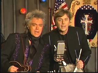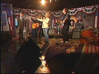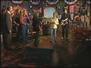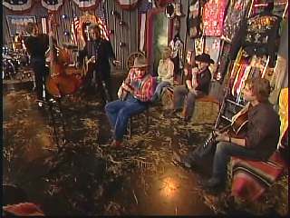 Eddie Stubbs started the show by introducing the guests. "From Nashville, Tennessee, the country music capital of the world and home of the air castle of the south, it's The Marty Stuart Show, featuring Marty Stuart, the Rolls Royce of country singers Miss Connie Smith, the ole Tennessee Slicker Leroy Troy, along with all the Fabulous Superlatives: Cousin Kenny Vaughan, Handsome Harry Stinson, the Apostle Paul Martin plus Gary Carter on steel guitar, and today's special guest Dierks Bentley with his guitarist Rod Janzen. Join us for 30 minutes of fun and great country music. I'm your announcer Eddie Stubbs. Now how about a Superlative welcome for our host, the coolest cat in the cornfield. Here is Marty Stuart." Marty said, "Thank you Eddie Stubbs. I got big business to talk to you about. Handsome Harry .... ." Marty and The Fabulous Superlatives performed "The Whiskey Ain't Workin'."