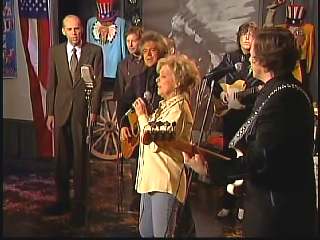 Eddie Stubbs said, "Leroy Troy right there and 'Bottle of Wine'. Leroy, I guess that makes you a honky tonk old guy. Well, it's time to get serious with you right now. You know we get a lot of mail on this show and the songs of inspiration seem to be some of the most requested. Connie Smith's got one picked out this week that we know you're going to enjoy. Hank Williams wrote this song years and years ago and Connie's been singing it on her shows for a long, long time. We're gonna get all the cast to sing on the chorus of this one. 'I'm Gonna Sing, Sing, Sing'."
