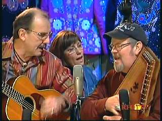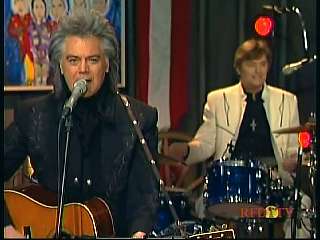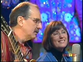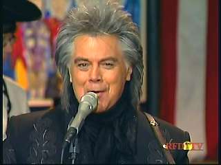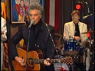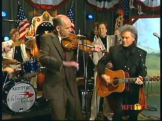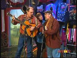 Marty said, "That's all right there. What's gonna become of that boy right there. I don't know. How 'bout a hand for Dale Jett and Hello Stranger. Thank you all for comin'." Dale said, "Thank you, Marty. Appreciate it." Marty said, "You're my favorite. Dale, I read ..... a critic once wrote about The Carter Family, the original Carter Family he said that 'In the light of perfect beauty, tears are the only answer.' And it's amazing to me how much power those Carter Family songs still have almost a hundred years since they were first recorded. And one of the ones that just keeps on comin' at you is one of my very favorites.... 'Anchored In Love Divine'. Would you honor us with it today?" Dale said, "I'd be glad to. It was one of my mother's favorites as well." Marty said, "We're gonna send it to Heaven to Janette today, all right?" Dale said, "All right." Marty joined them on the song.