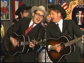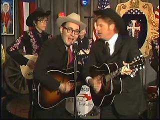 Marty said, "So glad to be in your living room. Thank you for coming to visit with us tonight on The Marty Stuart Show. Well, Eddie Stubbs, some weeks it's hillbilly week, some weeks it's a country week, some weeks it's a honky tonk week. It's all the above this week. We got cha all covered. Chris Scruggs and Chuck Mead, big big stars. Make 'em feel welcome. My buds." Chuck said, "Thank you for asking us there Marty." They sang "Nashville Blues."