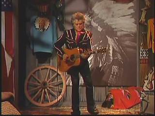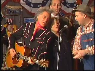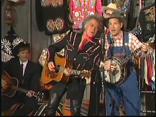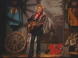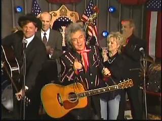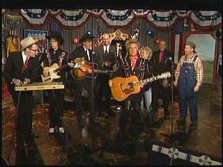 Eddie promoted Connie's boxed set Born To Sing. After a commercial break, Marty said, "Welcome back. Apostle, that Gary Carter took care of business on 'Lonely Street'. Mighty fine pickin' Mr. Carter. Well, we'll take care of all good things right now. Ladies and gentlemen, the sultan of Goodlettsville, the most popular man in country music. Here he is. You've asked for him for a return visit. One more time. How about a hand for Leroy Troy everybody. Hey ..... there's my man. You know Chuck, Chris, Gary and Connie. Hello Leroy." Leroy: "Howdy Marty." Marty: "What is the good word from Goodlettsville today, sir?" Leroy: "Oh I tell ya what. There ain't no good word." Marty: "No? What's up?" Leroy: "Well You know my uncle that's been so sick?" Marty: "Yeah." Leroy: "Just found out this week. The doctor told him that he's just got sick months to live." Marty: "Ahhhh" Leroy: "So anyhow, my uncle told him that he wasn't going to be able to make the payments " Marty: "To the doctor?" Leroy: "Yeah the doctor payments. So the doctor gave him six more months. He did." At this point Marty started laughing and could not stop. Marty: "One letter came in ....... that wanted to hear you and me sing a song together." Leroy: "Really." Marty: "And I mailed it to myself." Leroy: "Well....." Marty: "Can we sing one?" Leroy: "Yeah." Marty: "Whatcha wanna do." Leroy: "Let's play 'Roll on Buddy'." Marty" "Thought you'd never ask."