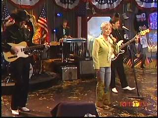 Marty said, "That's right. Good job, Jason. Fine job, Mr. Prine." Eddie Stubbs said, "Great job there from John Prine with Speed of the Sound of Loneliness." Eddie promoted the two DVD set of highlights from the first season of The Marty Stuart Show. After a commercial break, Marty said, "Welcome back, to The Marty Stuart Show. Hey Superlatives. John Prine and the boys on the hay bales. Good job, John, Jason and Dave. What about that, Handsome?" Handsome Harry said, "Awesome." Marty continued, "First class. Speakin' of first class, here she comes. How 'bout a hand for the great Connie Smith, ladies and gentlemen. Here she is." Connie sang "Just Let Me Know."