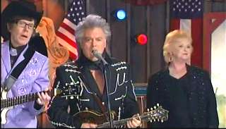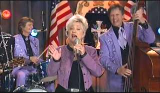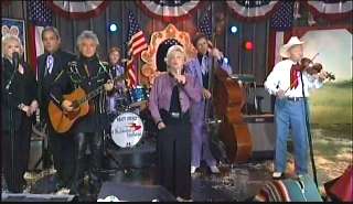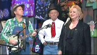 Marty said, "Thank you, lawyer Maddox." Don said, "You're welcome." Marty said, "All right. Yes." Eddie said, " 'The Philadelphia Lawyer'. A song written specifically for the Maddox Brothers and Rose by Woody Guthrie. One good song deserves another. Connie Smith is going to do this one for us today, joined by the cast. The Maddox Brothers and Rose had this out back in the late 40's and it became an instant classic. 'Gathering Flowers For The Master's Bouquet'."