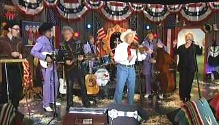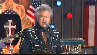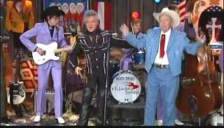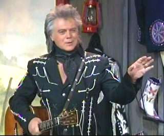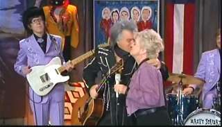 Marty said, " 'Down, Down, Down'." Eddie promoted Nashville, Volume I: Tear The Woodpile Down. Eddie said, "Great work, Marty. 'The Lonely Kind'." After a commercial break, Marty said, "I'm honored to tell ya that this show is sponsored by the Magnolia state. I'm speakin' of the great state of Mississippi. A place I dearly love. Mississippi is regarded as the birthplace of America's music. Mississippi also serves as host to nearly 200 historical stops along the way on the Blues and Country Music Trails that run thoughout the state. Now if you're travelin' through Sledge, Mississippi, you might consider visitin' one of country music's great heroes, Mr. Charley Pride's trail marker. 225 miles down the road from Sledge you're gonna find the Emerald City of Meridian, Mississippi, a royal musical destination. The good news is that fast progress is bein' made on the building which will serve as the mother ship for all things created in Mississippi. I'm speakin' of the Mississippi Arts and Entertainment Center. The entertainment center will serve as home to the stories, songs, paintings, archives and treasures from the musicians, writers, visual artists, pickers, sinners, saints, prophets and poets of the past, present and future that call Mississippi home. I consider it an honor to be a legacy of the state that claims the likes of Charley Pride, Jimmie Rodgers, Tammy Wynette, Eudora Welty, Pops Staples, Elvis Presley, Muddy Waters, Willliam Faulkner, just to name a few. We'll all be at the entertainment center so how 'bout a hand for dear ole Mississippi, Charley Pride's trail marker in Sledge, and Meridian, Mississippi and it's buildin' of the Arts and Entertainment Center. Speakin' of entertainment, this next one is gonna be big. Leroy and Karen, you had to call a lawyer in. Who's that behind ya?"
