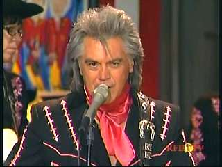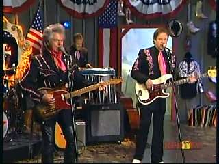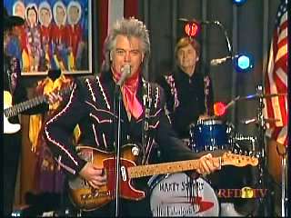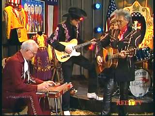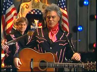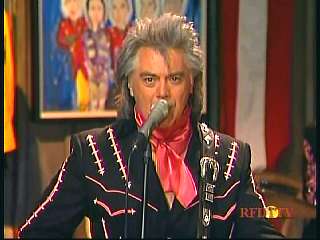 Eddie Stubbs said, "When songs are sung better, she'll be the one to sing 'em. That's Connie Smith right there and 'Walk Me To The Door'. A song she has on one of her albums." Eddie promoted the two DVD set of highlights from the first season of The Marty Stuart Show. After a commercial break, Marty said, "Welcome back, everybody. Wanna tell ya about a place called Pine Ridge, South Dakota. The Pine Ridge Indian reservation up in South Dakota land. I went there for the first time in the early 1980's and fell in love with the Lakota people. And never quit going back. We were there to play a benefit concert because I was told it was the poorest county in the United States of America. Well, maybe financially, but not spiritually. Those people showed up that night and they showed up in spades for me. I tell ya what. They were beautiful. Their wisdom, their dignity and their integrity. It showed the strengths of our original American people. Well, I got inspired a few years later to write a record called Badlands. The past, present and future of the Lakota people. That place is near and dear to my heart. Been adopted into the tribe since then. Connie and me got married up there. I just can't seem to quit goin' back. Here's a song -- the title of our record called 'Badlands'."