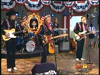 Eddie Stubbs said, "Leroy Troy right there and 'Nero Played His Fiddle While Rome Burned'. Well I hope somebody let the Vatican city fire department know Leroy was gonna do that song today. Well, it's hymn time right now and we're gonna get Marty Stuart and The Fabulous Superlatives to do a song. Several years back, Marty wrote this song. It was the title track of the wonderful concept album, The Pilgrim."