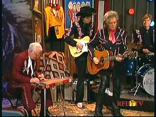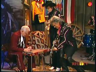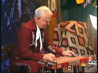 After a commercial break, Eddie Stubbs promoted the Superlatone Store. He introduced Marty. Marty said, "It is special, Eddie Stubbs. I appreciate that. Ladies and gentlemen, it gives me great pleasure to truly present to you one of the masters of country music. Ladies and gentlemen, Superlatives, yes, yes. He was a Rainbow Ranch boy. Mr. Hank Snow's steel guitar player for over 30 years. How 'bout a hand for the great Kayton Roberts, everybody. Glad to have you with us. Give me five." Kayton said, "All right, baby." Marty continued, " I tell ya what, Kayton. Let's do one of the Singing Ranger's best songs, in my opinion -- 'Now And Then (There's A Fool Such As I)'. You start it and I'll jump in, all right?" Kayton said, "Okay."