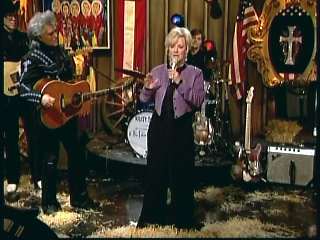 Marty said, "Give me five and everything will be all right." Charlie said, "Thank you."  Marty said, "Yes, sir." After a commercial break, Marty said, "Welcome back, everybody. I'm Marty Stuart and you're watchin' The Marty Stuart Show. And, Superlatives, look over here. Country Music Hall of Famer, Mr. Charlie Louvin. Mr. Louvin." Charlie stood up and took a bow. Marty continued, "And here comes one of Charlie Louvin's greatest fans. How 'bout a hand for the great Connie Smith. Come here, Constance. Hey, hey.     Hi, baby. We got Charlie Louvin in the house today." Connie said, "I know  and I'm tickled to death. I've  told everybody on stage, backstage, everybody that would listen, how big a fan I am of the Louvins. When I was   growin' up in southern Ohio,  we'd listen to the Grand Ole Opry on the radio and my very favorite were the Louvin Brothers and I'd  want to stay up to hear them before daddy could put me to bed. And I'd like to sing ... I asked Charlie which of his songs that he's recorded he'd want me to do today and  this is it. It's called 'I Don't Love You Any More (And I Don't Love You Any Less)'." Marty said, "All right."   Eddie promoted Marty's book of photographs,  Country Music: The Masters. After a commercial break, which included promoting Marty's Ghost Train album,   Marty said, "Welcome back.  I'm always proud to say that this show is sponsored by my friends in the  state of Mississippi, my home state. It's always nice to tell ya about the good news of the Magnolia state. For instance, 128 miles south of Elvis Presley's historic birthplace in Tupelo, is the city square in my hometown of Philadelphia. Now here's what I recommend that you do. Go visit Philadelphia and, when you do, drop by Steve's on the square. Talk to my pal Steve Wilkerson and ask Steve to direct you to Peggy's  Restaurant. A Philadelphia, Mississippi tradition since 1961.   Peggy's has been profiled by the New York Times, and the fried chicken was voted by Mississippi Magazine as the best of the best. Wednesday's fried chicken  day, Leroy, so go early. Peggy's is open from 10:30 till  2 o'clock. You'll sit down with neighbors. Make your own change at the basket at the counter. You won't be disappointed. Speakin' of change. No spare change in his pocket, just the big green stuff, with a couple of pals with him. How 'bout a hand for the Sultan of Goodlettsvile, the ole Tennessee Slicker, the most popular man in country music, Leroy Troy. Brought Lonesome Lester and ole Dan Kelly, Apostle Paul. Hello buddy boy."  Leroy: "Howdy"