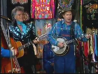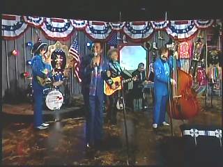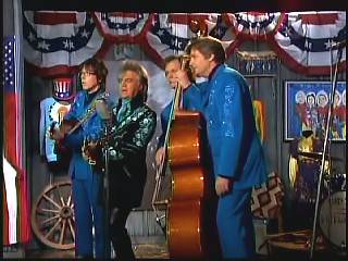 Eddie Stubbs said, "Ah Leroy Troy right there and 'Little Pink'. Leroy, she sounds like a real dreamboat. I think you need to try and find her and put her on the show with you sometime. Well, let's settle down right now and get serious. We'd like to encourage you come Sunday morning, you and yours to attend the church of your choice. And with that in mind, we'd like to declare hymn time this week. Here's Marty Stuart and the Fabulous Superlatives quartet with one of the old favorites, 'Over In The Glory Land'."