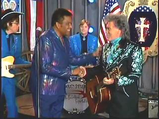 Marty welcomed everyone to the show. "Thank you very much. Thank you very much. I mentioned dear old Mississippi, my home state and I'd like to introduce you to one of my fellow Mississippians. One of the main men of all time ...... in the Country Music Hall of Fame. That's right Superlatives. How 'bout a hand, ladies and gentlemen for Mr. Charley Pride." Charley performed "Kiss An Angel Good Morning."
