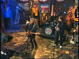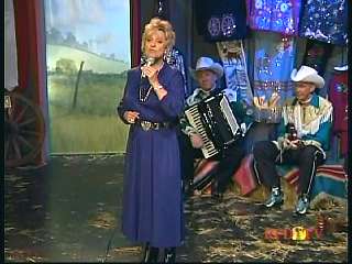 After a commercial break, Marty said, "Welcome back to The Marty Stuart Show, ladies and gentlemen. If you're just joinin' us, we're here with our friends The Riders In The Sky, Superlatives. Cowboy, look, look, look, there they are. It's the cowboy way today. Along with 'Tex' Stubbs makin' the announcements today." Marty laughs. He continues, "But it's about to get more beautiful out here. How 'bout a hand for the great Connie Smith, ladies and gentlemen. Hey baby, come on." Connie sang "Long Black Limousine."