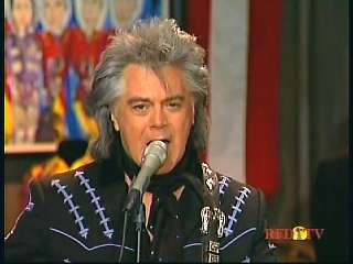 Marty said, "Awww, nothin' but a little hearbreaker. Send that to ole Moon down in Texas. Ladies and gentlemen, welcome to The Marty Stuart Show. We've gotcha covered if you like country music for the next half hour. Stick around with us. You're gonna love it. Superlatives. You know what I saw when I drove up this morning? The big Winnebago with the bullhorns on the top. Could only mean one thing. The Riders In The Sky are in town. Make the boys feel welcome. Hello Riders." They performed "Press Along To The Big Corral."