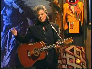 Marty said, "Oh yes, Chris Scruggs. Mighty fine. My dear friends and neighbors. Glad you're with us on the Marty Stuart show tonight. Good country music comin' your way for the next half hour. Superlatives ..... pulled up this morning in the parking lot, you know what I saw." Someone asked, "What'd ya see?" Marty continued, "The big pulpwood truck got two new chrome air horns on it. Can only mean one thing. You know. The Tennessee Mafia Jug Band with Leroy. There's Leroy, there's Lester, Dan Kelly, Mike Armistead, and old Ferg. Hello gentlemen." They all yelled back "Hey there" and "Howdy." Marty continued, "Good to see ya. Thanks for comin'. The truck looks great, Lester. The truck looks great." Lester said, "Thank ya sir." Marty said. "Did you bring us a good song?" Lester said, "We brought ya a good song." Marty asked, "Whatcha got?" Lester said, "No Letter In The Mail." Marty said, "A precious number. Give 'em a hand, ladies and gentlemen."