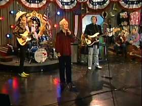 After a commercial break, Eddie Stubbs promoted the album Souls' Chapel. Marty asked for a round of applause for his guests. "Thank you for watching us here on RFD-TV. If you enjoy the show, write me in care of the Grand Ole Opry. We'll be happy to write you back and give you a call or talk with you, or come over to the house for a piece of chicken. It don't matter. We're gonna play the famous song now to go home with called 'Rawhide'." Leroy Troy and Connie Smith danced a little jig.