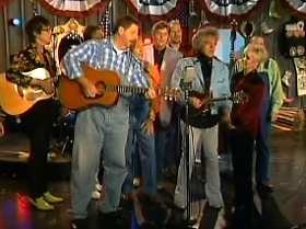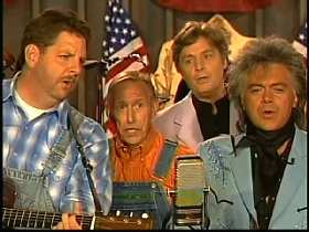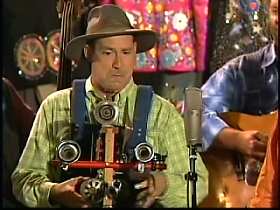 Eddie Stubbs promoted the album Compadres: An Anthology of Duets. After a commercial break, Marty's back ...."Les, it's all right. I'll tell them. What Lester wanted me to say to everybody is that he's proud of all the boys. So proud of them because it's their first time out of jail at the same time in a long time. How about a hand for that. Leroy, come here. What's that around your neck?" Leroy says, "It's my agitator." Marty says, "Well agitate something with that thing." Marty and the Tennessee Mafia Jug Band performed "The Bicycle Wreck."