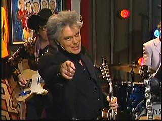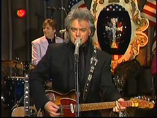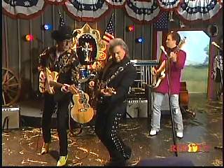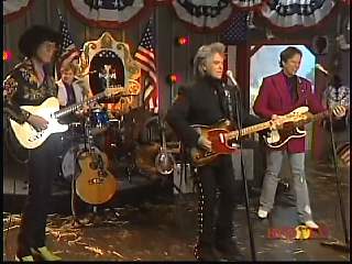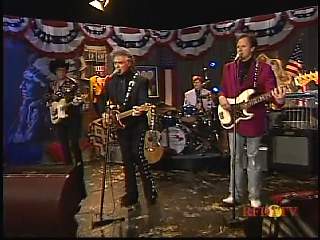 Season 2 of The Marty Stuart Show kicked off with Eddie Stubbs introducing the guests. "From Nashville, Tennessee, the country music capital of the world and home of the air castle of the south, it's time for The Marty Stuart Show, featuring Marty Stuart, the Rolls Royce of country singers Miss Connie Smith, the ole Tennessee Slicker Leroy Troy, along with all the Fabulous Superlatives: Cousin Kenny Vaughan, Handsome Harry Stinson, the Apostle Paul Martin, plus Gary Carter on the steel guitar, and today's very special guest, a member of the Country Music Hall of Fame, Miss Emmylou Harris. Join us now for 30 minutes of fun and great country music. I'm Eddie Stubbs. Now how about a Superlative welcome for our host, Philadelphia, Mississippi's favorite son, here is Marty Stuart." Marty said, "Yes sir. Route 8, Philadelphia, Mississippi." Marty and The Fabulous Superlatives performed "Branded."