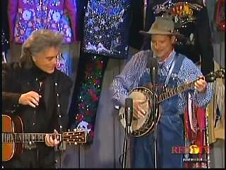 Marty said, "A fine, fine song. I gotta go do a gospel song now." Eddie Stubbs said, "Great job, there, Leroy and one of the old favorites here for sure, 'Mountain Dew'. Well, I saw Leroy take his hat off and that means one thing. That means it's hymn time on the program. We're gonna have the Fabulous Superlatives Quartet gather around the microphone. All four of the fellas had a hand in writing this one. It's called 'Heaven'.".