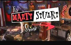 Marty said,  "Aww, Stuart Duncan and the boys.  I'm tellin' ya. Cous. On behalf ... come on over gentlemen. On behalf of all the boys on the show today, Miss Connie Smith, Leroy Troy and Gary Carter, Eddie Stubbs, fiddlin' Stuart Duncan, I'm Marty Stuart sayin' thank you for comin' to see us. Come see us again next week right here on The Marty Stuart Show." |
