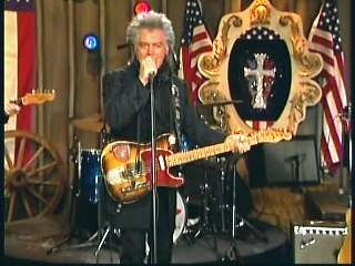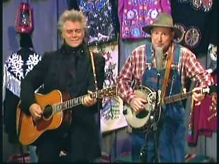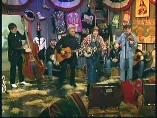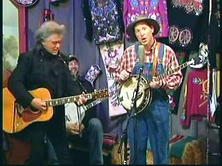 Eddie promoted Marty's book of photographs, Country Music: The Masters. After a commercial break, Marty said, "Glad to have ya back. Our show is sponsored each and every week by the state of Mississippi, the birthplace of America's music. It is indeed a state filled with music and natural beauty. Now, if you need a place to get away from it all, I might suggest you journey yourself to Meridian, Mississippi and visit beautiful Bonita Lakes. Bonita Lakes is one of the largest urban foresttry projects within the city limits in the nation. 3,300 acres feature nature trails where you can walk, run, bike, or do just like I do .... stand under a pine tree and sing your heart out. There's a waterfall and a 100-acre lake on the property that offers boatin', fishin', huntin', hikin'. You can hook up your camper. Get a room at the on-site hotel. Or just lay out in the yard Indian style to enjoy the magnolias, whippoorwills, sound of the distance train or watch shooting stars fall all over the water. Sounds pretty, don't it. You'll find all of that and more at Meridian's Bonita Lakes. How 'bout a hand for the Bonita Lakes. Sounds good, don't it? Speakin' of pretty, Mountain Heart, here he comes. Pretty much one of my favorite people in the world. The ole Tennessee Slicker, the Sultan of Goodlettsville. How 'bout a hand for Leroy Troy. Come here Troy boy. Hey, buddy boy. You know Apostle, Mountain Heart. What's on your mind Goodlettsville Sultan?"