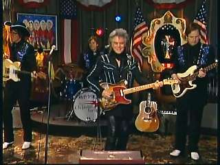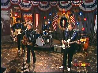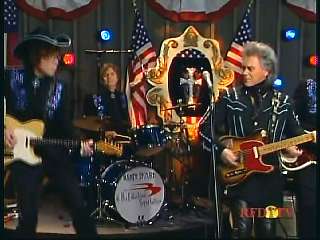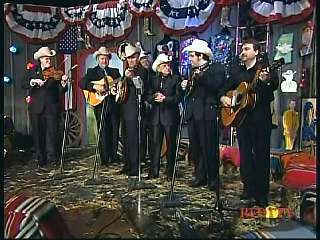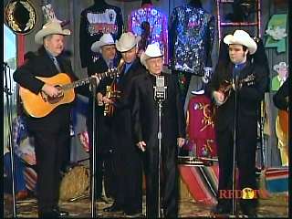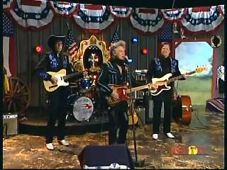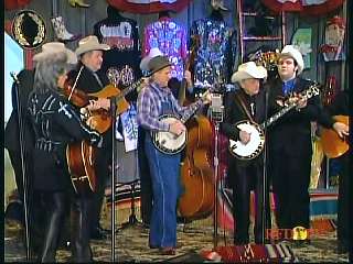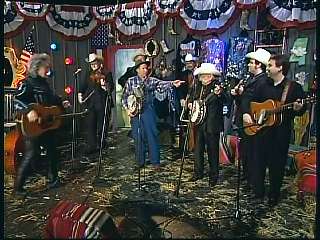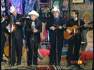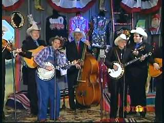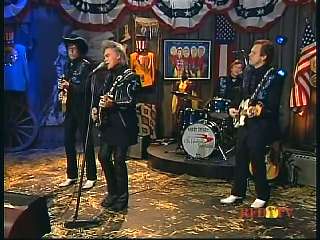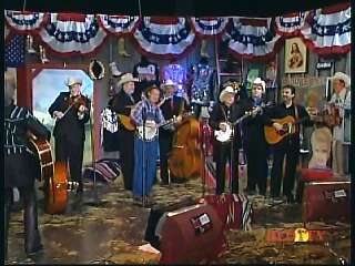 Marty said, "Hillbilly Highway, Cous. Well, that's right. Speaking of 'Hillbilly Highway', well, this man helped invent the hillbilly highway. Handsome Harry, he started it when it was a dirt road." Handsome Harry said, "He sure did." Marty continued, "He's gone on to be one of America's finest. Representing Clinch Mountain, ladies and gentlemen, how 'bout a hand for Dr. Ralph Stanley and all the Clinch Mountain Boys. Here they come, Doc. All right, Doc, Nathan, Ralph II, Dewey, ole Steve Sparkman and brother James." Ralph and the boys performed "Riding The Midnight Train."