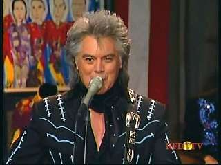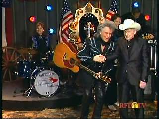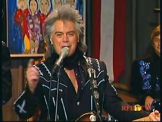 Eddie Stubbs said, "First-rate job right there, Marty Stuart. One of his own tunes there called 'Reasons'." Eddie then promoted Marty's photo book, Country Music: The Masters. After a commercial break, Marty said, "Welcome back to The Marty Stuart Show. If you're just joining us, thank you for tuning in. Dr. Ralph Stanley and all the Clinch Mountain Boys are with us today. And if you like what we're doin', like what you hearin' and seein', write all of us at the Grand Ole Opry. We'll be glad to try and answer your letters and your cards. Dr. Ralph, we're gonna send this big number out to Columbia, Mississippi, home of the big bluegrass festival down there. Never know when you might see Dr. Ralph and all the boys down there. But it's time. Dr. Ralph, it's time.... for the Sultan of Goodlettsville, the ole Tennessee Slicker. It's a big day for him coz he's gonna get to play a song with ya. How 'bout a hand for Leroy Troy, ladies and gentlemen. Come here, Leroy. We'll make him a Clinch Mountain Boy today. Make him a Clinch Mountain Boy. I got a request, boys." Leroy said, "What." Marty continued, "'Rocky Island. Goin' to Rocky Island. Hit it Doc."