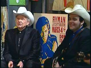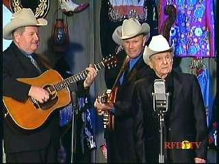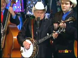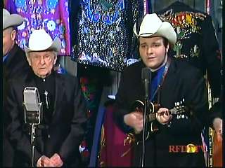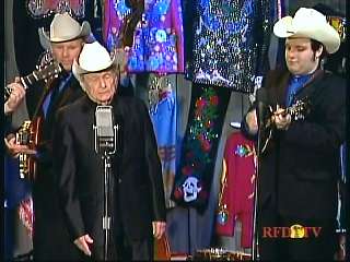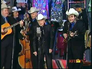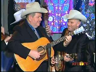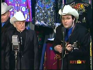 After a commercial break, Eddie Stubbs promoted the Superlatone Store. Eddie said, "Well, it's time for the hills of Mississippi to get reaquainted with the hills of ole Virginia one more time. Here's Marty Stuart." Marty said, "Thank you, Mr. Stubbs. Ralph, while we're cuttin' deals, how much you give for him?" Ralph said, "All he's worth." Marty said, "Here we go again." Ralph said, "I can't give him much." Marty said, "That's enough, that's enough. I've watched you win a lot of awards, receive a lot of honors, but when the President put the National Metal of Arts on ya, I was mighty proud for ya. How 'bout a hand for that." Ralph said, "I was, too." Marty said, "Yes sir, yes sir. Dr. Ralph Stanley and all the Clinch Mountain Boys, ladies and gentlemen." Ralph sang "Man Of Constant Sorrow."