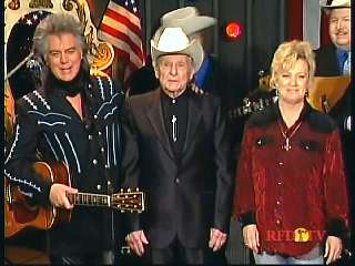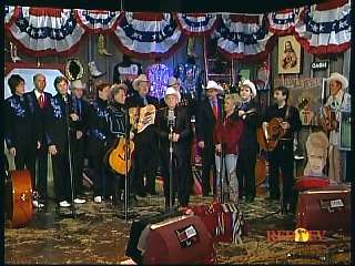 Marty said, "That's just right, right there. Yes sir. Dr. Ralph and all the Clinch Mountain Boys. Fine job, sir. On behalf of Dr. Ralph Stanley and all the Clinch Mountain Boys, The Fabulous Superlatives, Miss Connie Smith, Eddie Stubbs, Gary Carter, Leroy Troy, I'm Marty Stuart saying good night everybody. Thank you for comin'. See ya again next week."