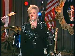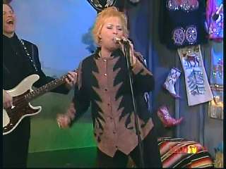 Leroy: "Hey, I've got Miss Karen Wheeler." Marty: "Miss Wheeler." Karen: "And he's mine." Marty: "Well, that's all right. You can keep him. You know one of the things I love the most about your city of Goodlettsville, Tennessee?" Leroy: "What?" Marty: "Roy Acuff and the Smoky Mountain Boys are still big news there." Leroy: "They sure are. And I'll tell ya what, Marty. When I was a little boy ,,,," Marty: "Yeah." Leroy: "I used to love listenin' to the Grand Ole Opry on Saturday night. Could hardly wait for Mr. Acuff's show to come on. And Onie Wheeler would blow that train whistle and play that harmonica, and this is Onie's little girl." Marty: "Karen, that's right." Leroy: "And .. I've got my ole buddy Superman. We're gonna have Darrin, Jamie and Connie join in. We're gonna do 'Night Train To Memphis'." Marty: "Well, kick it off there boy." Leroy: "All right."