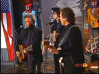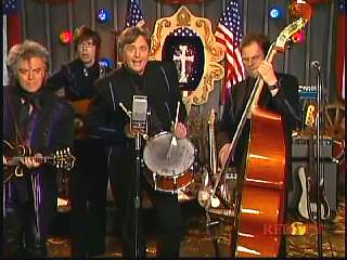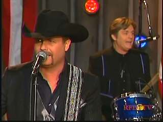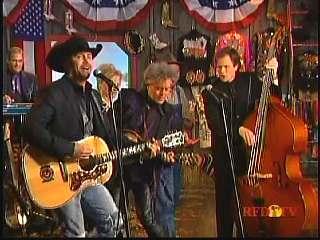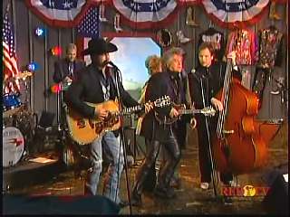 After a commercial break, Eddie Stubbs promoted the "Superlatone Collection" of five CDs, Live at the Ryman, Badlands, Compadres: An Anthology of Duets, Cool Country Favorites and Souls' Chapel. He introduced Marty again. Marty said, "Thank you, Eddie Stubbs. Mr. John Rich." John: "Thank you, sir." Marty: "You're a busy man. Thank you for coming to see us." John "Thank you for asking me." Marty: "I love everything you're doing out there. Thank you for coming. I feel like fightin' down in the South land today. What do you think?" John: "The Battle of New Orleans." Marty: "Let's do it."