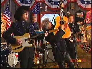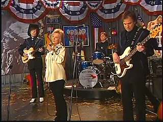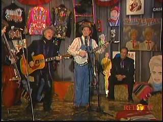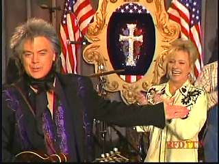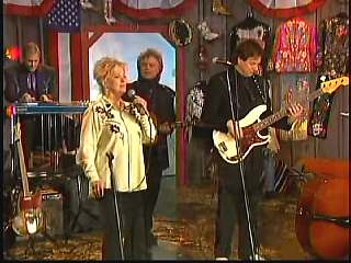 Eddie promoted Connie's boxed set Born To Sing. After a commercial break, Marty said, "Well, that's the kind of stuff I'm talking about, Apostle." Marty shakes Paul Martin's hand." "Looking good Apostle. Ladies and gentlemen, here he is. You've asked for him. The Sultan of Goodlettsville, the most popular man in country music -- John Rich, you might ought to get to attention for this -- the ole Tennessee Slicker Leroy Troy. How 'bout a hand for Leroy. Welcome Leroy. You know John, Connie, Gary. I don't know what you're up to today, but you even brought the preacher with you." Leroy: "Hey, I did. I brought Brother Gene with me." Marty: "Well that's good." Leroy: "I figured if I can't make it to church every Sunday morning, at least I can have Brother Gene out to see me." Marty: "That's good. We're glad to have Brother Gene. Sing him a song." Leroy: "All right. Let's do 'Miss Molly'."
