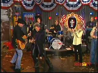 Marty said, "Thank you for joining us here on The Marty Stuart Show. We've got some country music for you for the next half hour. Stay tuned and we'll just take care of the driving. Our first guest, now he's a triple threat anywhere you put him. He writes 'em, he sings 'em, he produces 'em. And when it's time to back it up, he puts on that fancy cowboy hat and takes care of business out on the road. How about a hand for my man, Mr. John Rich, ladies and gentlemen." John said, "Send this out to the veterans in the audience." John sang "The Good Lord And The Man." After the song, Marty said, "Tell it like it is, John Rich. Tell it like it is."
