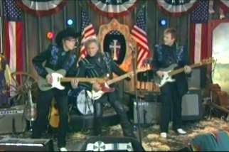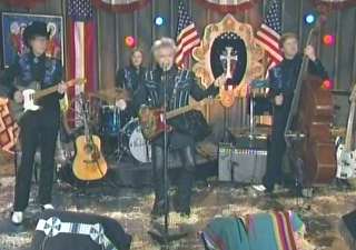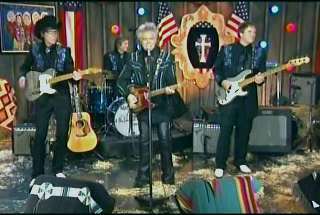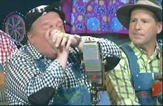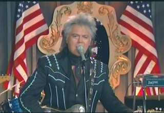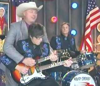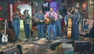 Marty said, "I'm Marty Stuart. So glad you could be with us today. Aww, it's big today, Superlatives. It's big. To begin with, first thing, pulled in the parking lot this mornin'. First thing I saw was the big pulpwood truck with the bullhorns and chrome stacks. Could only mean one thing. The Tennessee Mafia Jug Band's in town. Hello gentlemen. Hello gentlemen. Hello Lester." Lester said, "Marty, how are you." Marty continued, "Come over here. Hello Leroy. Glad you're back, Lester." Lester said, "Good to be here, Marty." Marty said, "Welcome, welcome back. Seems like though every time ya come, there's a few more on stage." Lester said, "Yeah, you know this work-release program's workin' out real good for us." Marty said, "Glad the boys are all out at the same time and sober." Lester said, "All right. Good to be here." Marty said, "What's the name of the song, Leroy." Leroy said, "Sick, Sober, and Sorry." Marty said, "Oh, how 'bout a hand for The Tennessee Mafia Jug Band."