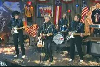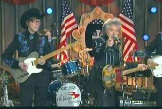 Eddie said, " 'Sick, Sober, And Sorry'. The Tennessee Mafia Jug Band." Eddie promoted Leroy Troy's CD The Old Grey Mare. After a commercial break, Marty said, "Welcome back, everybody. Hey look over here. How 'bout a hand for the Tennessee Mafia Jug Band. And, hey Superlatives, see that man right there in that hat. It's his fault. It's his fault that we play the way we do. The King of Twang, a member of the Rock and Roll Hall of Fame. How 'bout a hand for our friend, Duane Eddy. Welcome Duane. Oh Duane. And how 'bout a hand for one of the greatest country singers of all time. Singin' one of her famous RCA Victor recordings. How 'bout a hand for Miss Connie Smith. Hello Constance. Ahhh. Somethin' purdy has finally come out on stage. Hi baby. Sing your song." Connie performed "I Never Once Stopped Loving You."