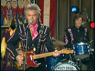 Marty said, "Hey, look over here. Representin' Butcher Hollow, Kentucky and Spook Hollow, West Virginia. How 'bout that for country music doll babies. All right, Cous." Marty and The Fabulous Superlatives performed "Count Me Out."